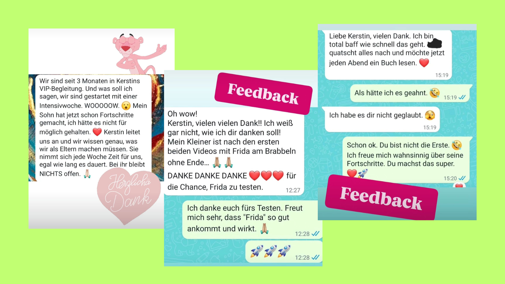 Nachdem sich ihre Tochter selber nicht altersgerecht entwickelt hat, begann sie mit ihr zu arbeiten, zu forschen und entwickeln.